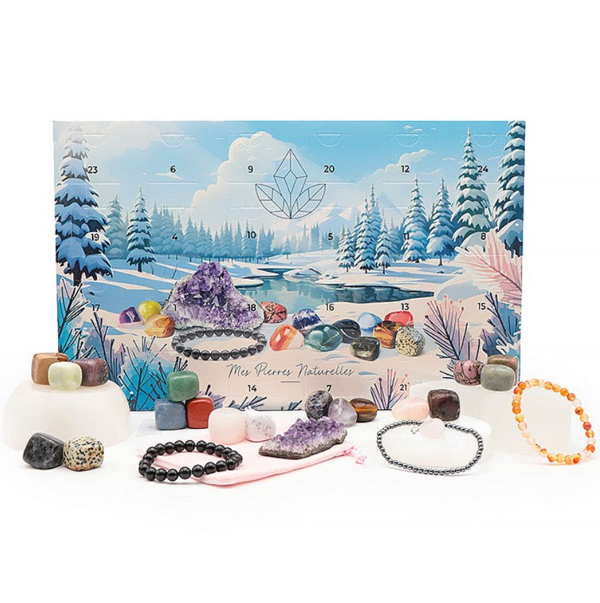 Découvrez chaque jour un nouveau trésor avec notre Calendrier de l'avent plaisir. Ce modèle comprend une sélection variée de pierres roulées, des bracelets et une géode d'améthyste pour vous apporter du bien-être et de l'énergie positive. Un cadeau parfait pour célébrer les fêtes avec style et sérénité.