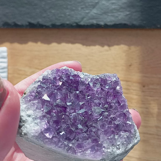Ces magnifiques géodes améthyste AAA mesurant 7 cm sur 7 cm sont une rareté à découvrir. Profitez de la pureté et la beauté de la pierre dans votre quotidien. Parfait pour la méditation et la purification de l'énergie. Obtenez les bienfaits de la lithothérapie avec ces géodes uniques.